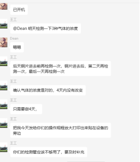 2024年8月份重慶******第三方檢測公司再次采購我司一臺型號為“WHQ-300B”型的混合氣體腐蝕試驗箱,設(shè)備被運送到客戶指定的場地安裝調(diào)試運行。客戶后期自行進行一次銅片增重試驗,起初試驗結(jié)果不是很理想,,試驗的流程和注意事項未了解透徹,我司針對以上信息,整理了操作指導(dǎo)作業(yè)書進行幫助理解;通過理論知識和我司技術(shù)人員線上指導(dǎo)操作的配合,該增重試驗很成功。試驗結(jié)束之后客戶將數(shù)據(jù)發(fā)給我司,以下是客戶和我司聊天記錄以及客戶做的數(shù)據(jù)信息: